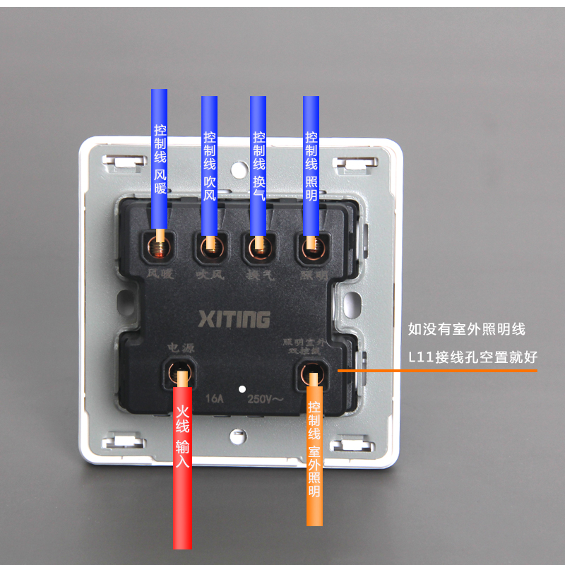 86 type four-open heater Yuba special switch with linkage dual motor universal wall panel 16A white