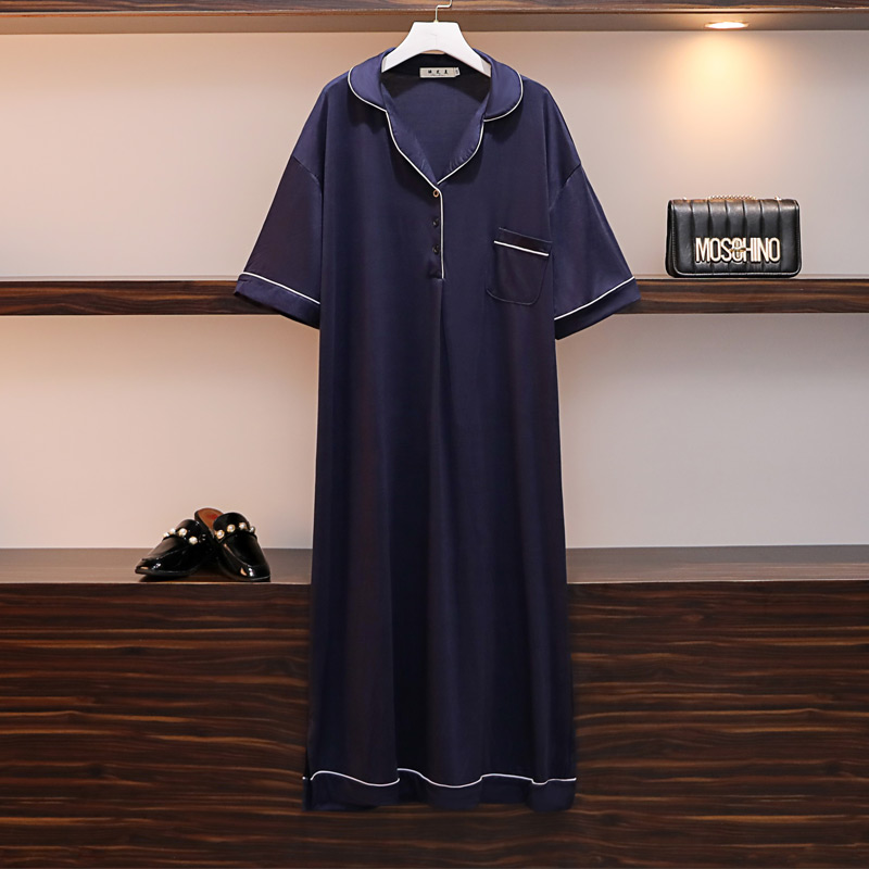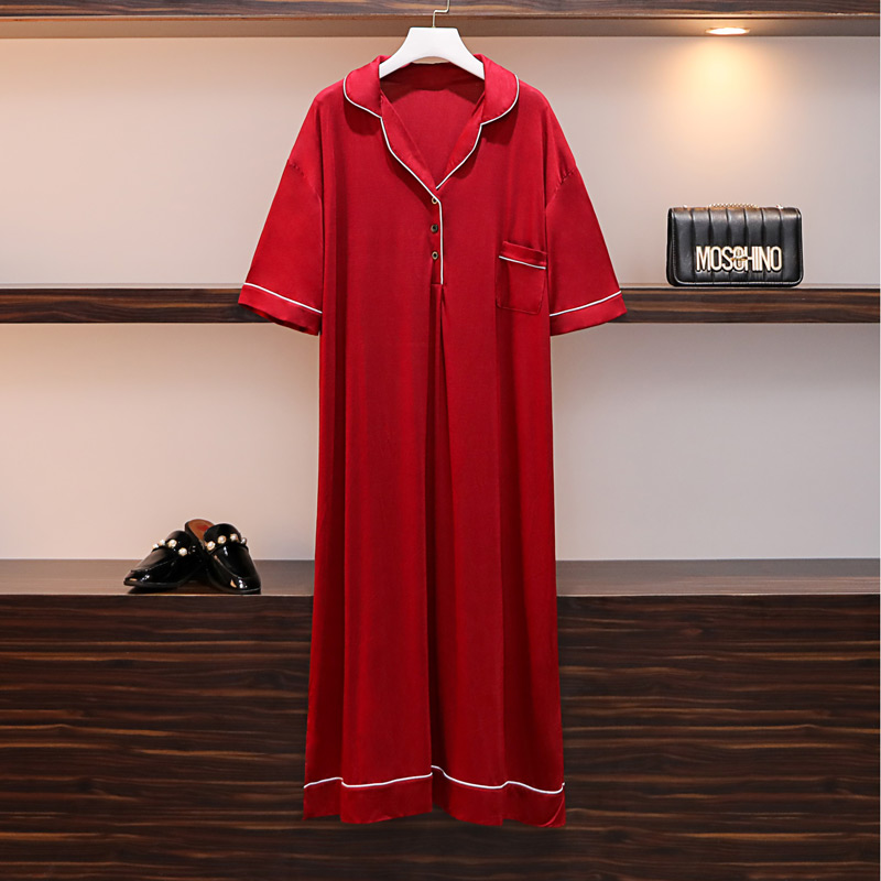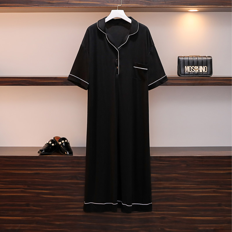 Nightdress women's summer short-sleeved thin section large size fat MM200 catties modal cotton pajamas pregnant women long version fat sister