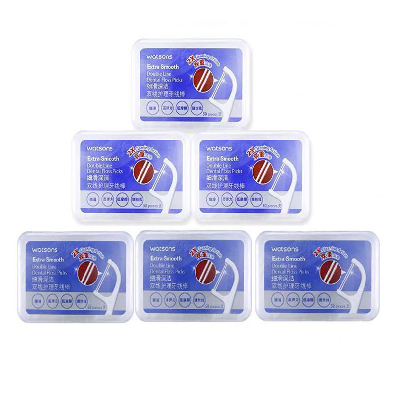 Watsons floss smooth and deep clean double-line care floss sticks 50 X6 boxes (300)