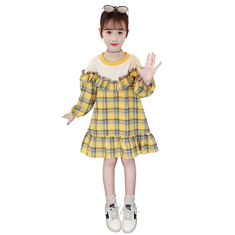 Girl Spring Dress SuperOcean Plaid dress Children 2022 Chunqiu Long sleeves Shirt dress Girl clothing Net Red Skirt Tide
