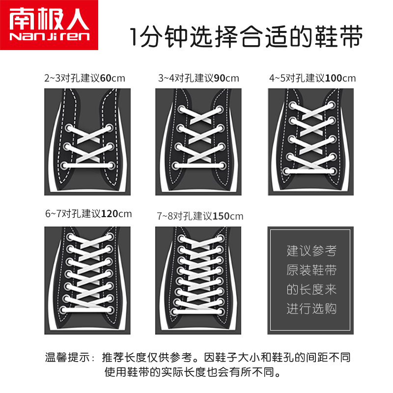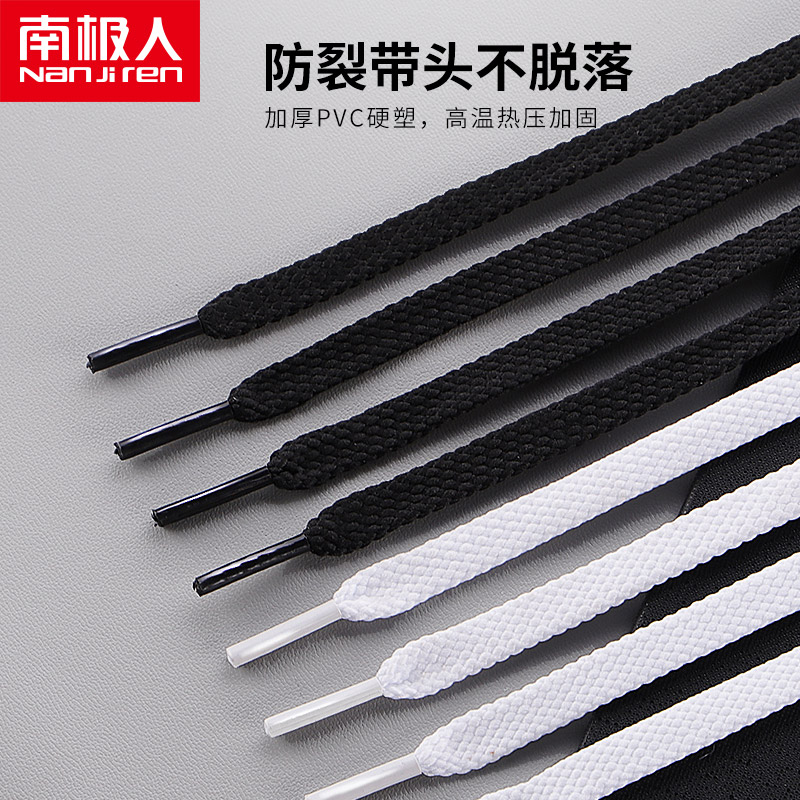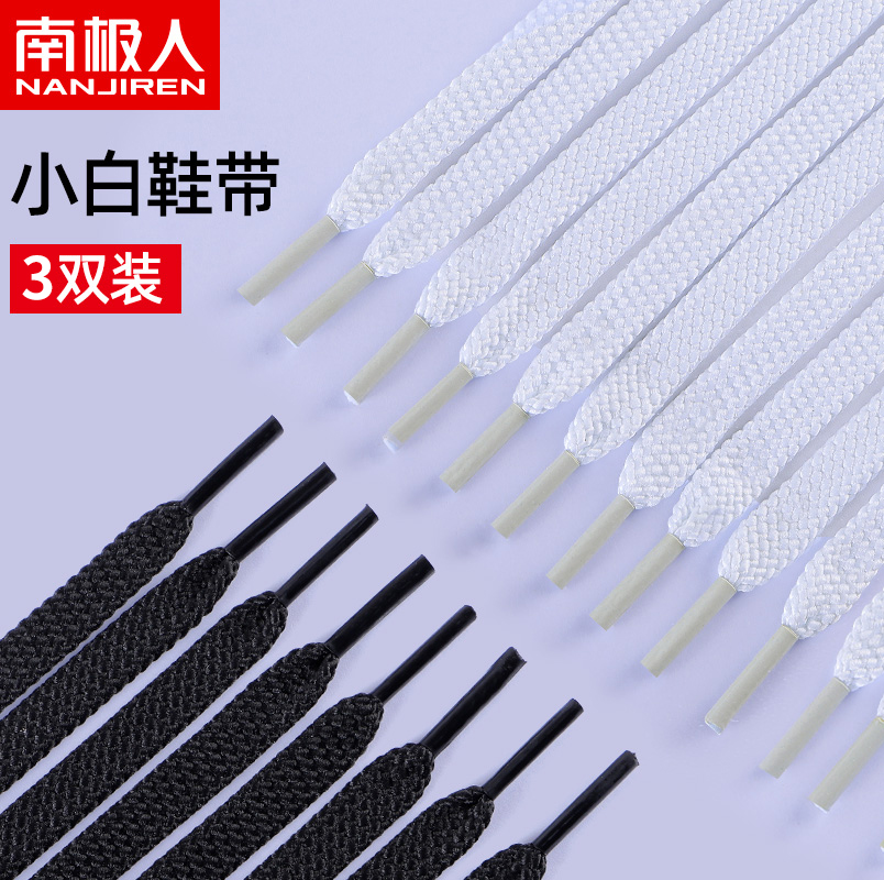 South Pole 3 Double flat shoestring male and female sloth small white shoes pure white high help 100 lap shoestring summer-Taobao