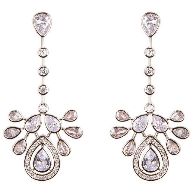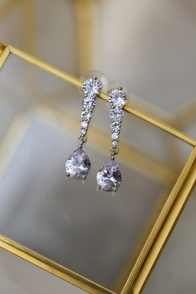 Knocks Bridal Earrings Earrings Earrings High-end Micro-Inlaid Drilling Zircon Nails Long Version of Small Face Earrings Collection Silver-coated