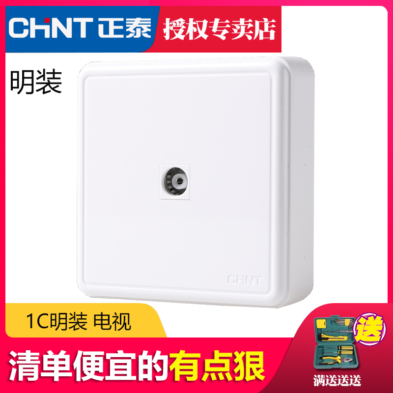 Zhengtai open-mounted switch socket 1C wall wired closed-circuit digital TV socket Panel open-line box socket Household