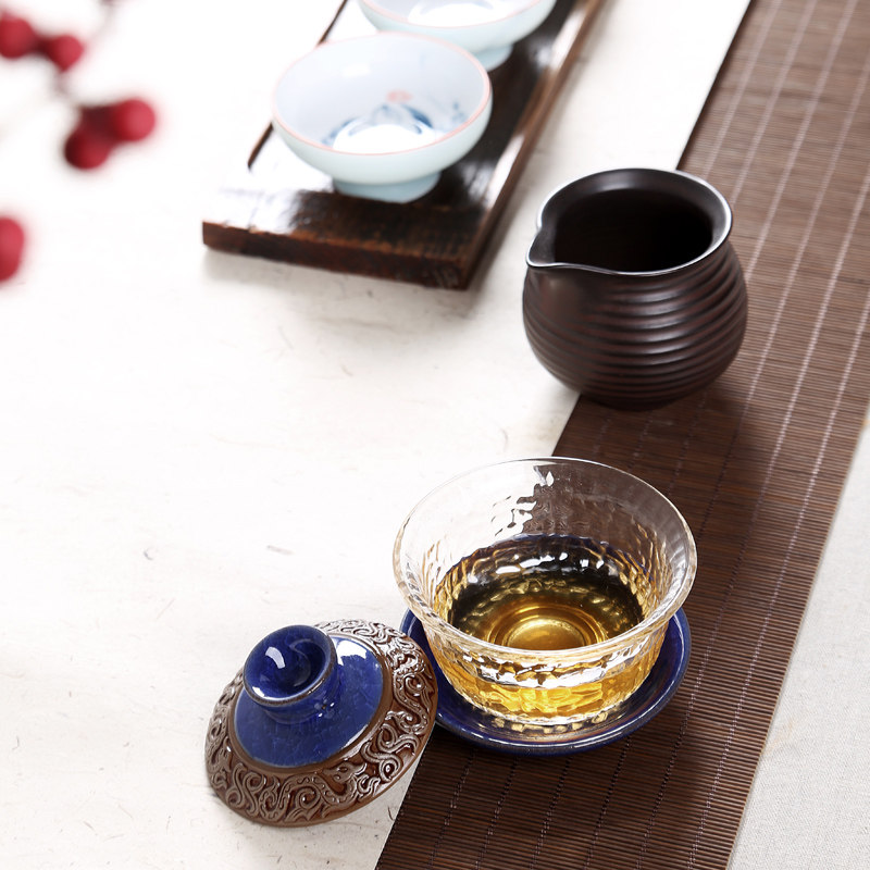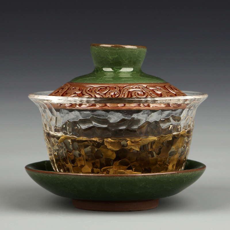 Single heat resistant glass lid bowl hand-painted ceramic three-only bowl ice cracked kutian tea furniture set thickened with tea cup track