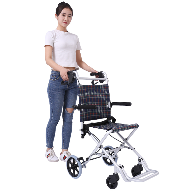 Elijiao elderly travel cart Folding lightweight aircraft Elderly travel Ultra-light portable pushable wheelchair
