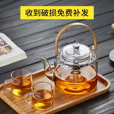 Glass cooking teapot single pot black crystal stove boiling water tea set heat-resistant high temperature thick lifting beam large tea maker set