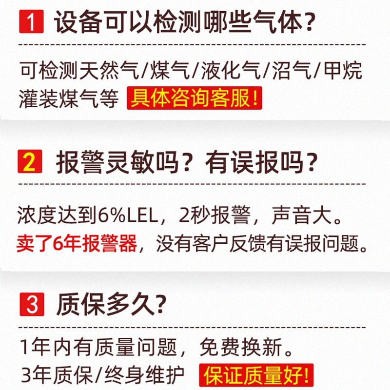 A - 10 million insurance + fire certification (fire recommendation) B type - 10 million insurance + fire certification (for liquefied gas) C type - 5 million insurance + fire certification (household model) D type - 1 million insurance + fire certification 4U liquefied gas propane new national standard gas alarm flagship model (new national standard) E model - 10 million insurance + test report + concentration display (real voice) F model - concentration display (real voice display) G model - 10 million insurance + test report + dual probe induction ( Voice composite type) H model - 10 million insurance + concentration display + dual probe induction (voice number display) K model - 10 million insurance + fire certification + SMS telephone reminder (NB model) linkage alarm (can be connected to the solenoid valve) linkage alarm + four-point aluminum valve (fire certification automatic air outage) linkage alarm + single pointed valve (fire certification automatic air outage) linkage alarm + cylinder manipulator (for catering) (fire certification automatic outage) new national standard GB 15322.2-2019 alarm New national standard cylinder manipulator package