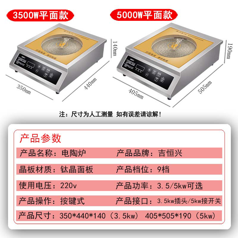 Ji Hengxing concave light wave furnace 3500W not pick up pan smart home high-power plane black crystal furnace commercial 5000W