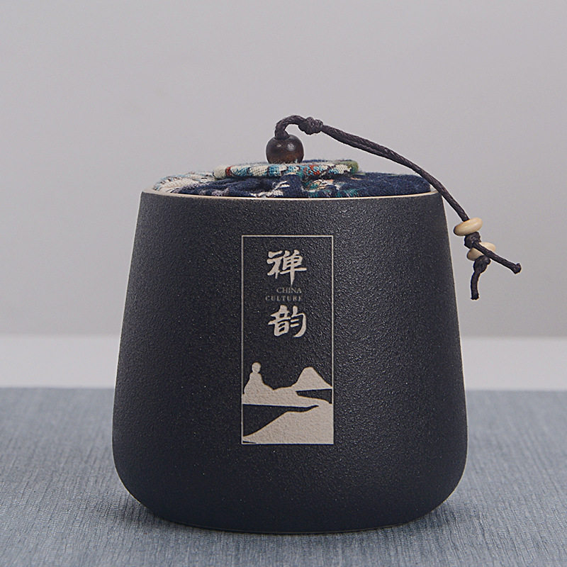 Retro Black Pottery Small Tea Leaf Jars Seal Tank Coarse Pottery Medicine Pot Storage Tank Pu'er Green Tea Black Tea Ceramic Tea Set Accessories
