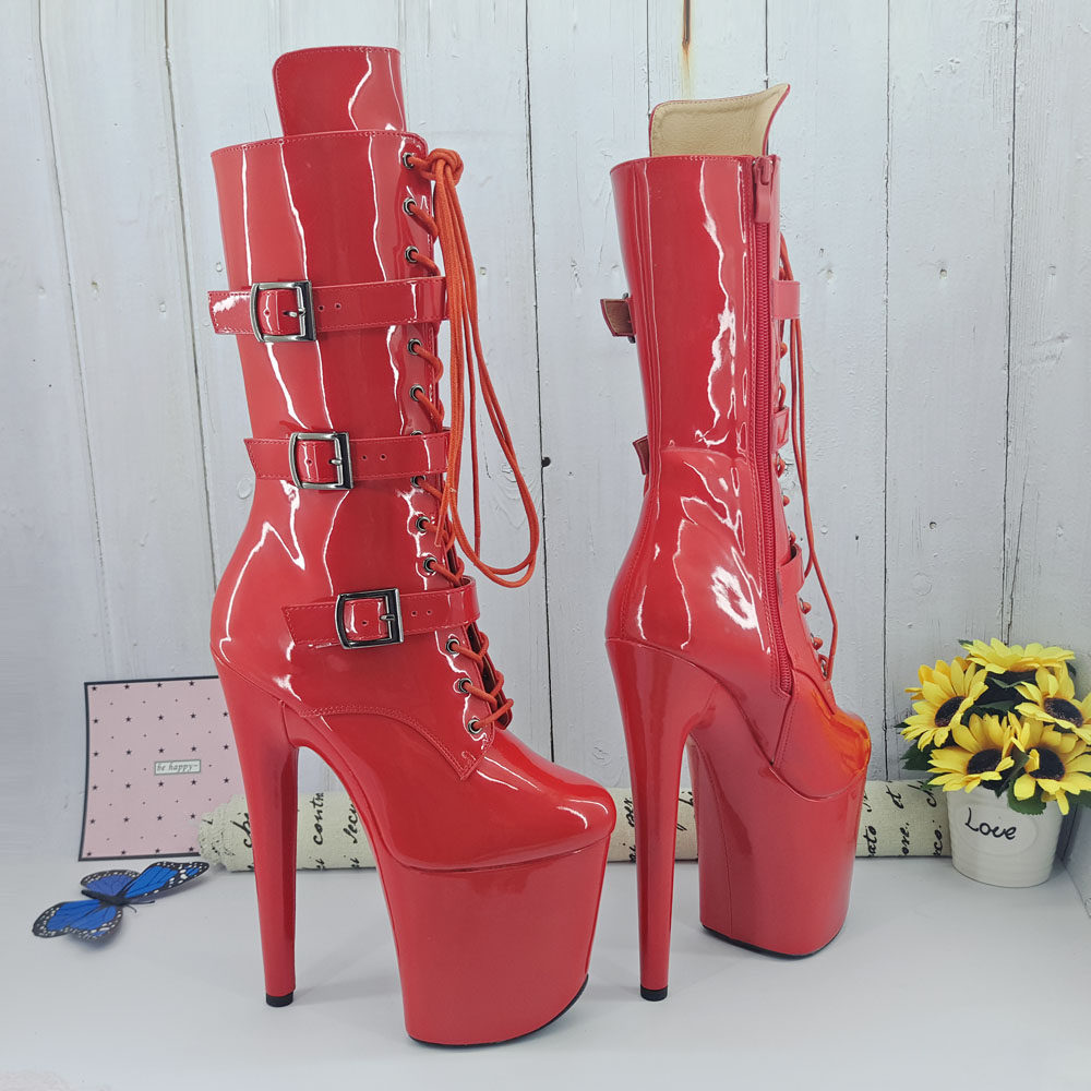 Leecabe four seasons belt buckle red boots Sexy fashion catwalk Super high heels thin heel waterproof platform shoes 4B