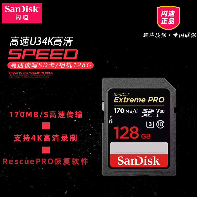 Sandisk flash di 128G SD memory U3 U3 C10 V30 4K 4K to revered extreme speed version read 170M S memory card camera storage card-Ta