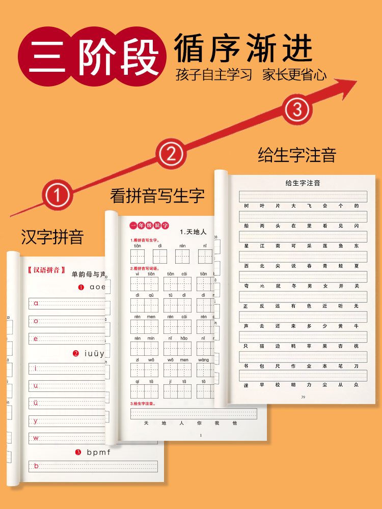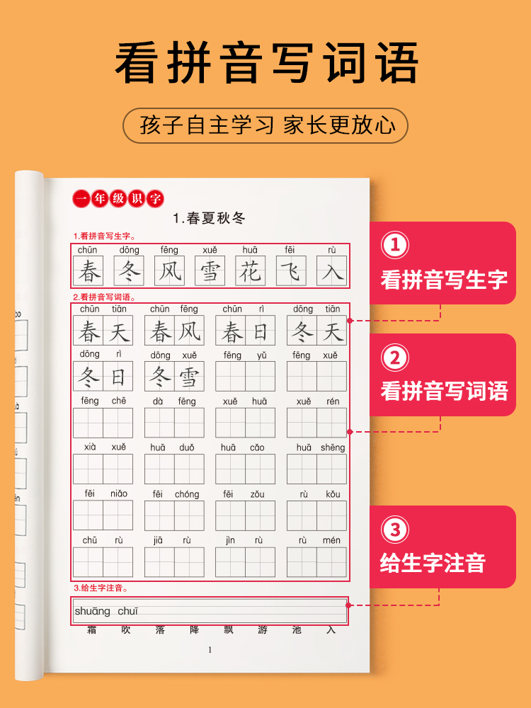 First grade reading of pinyin writing word idiom for children The children of elementary school children teach the writing of lettuletto synch group words parquet read special training practice calligraphy and practice book beginners sketch red and writing this daily practice of language daily practice