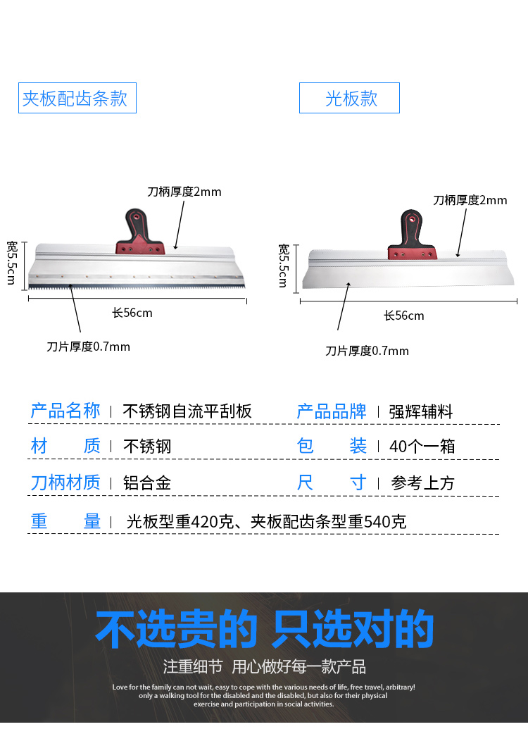 Qianghui excipient toothed rake cement self-leveling scraper stainless steel toothed scraper epoxy cement mortar tool