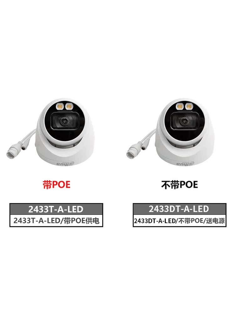 2433T-A-LED with POE powered 2433DT-A-LED without POE powered