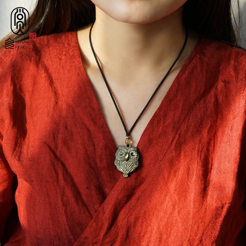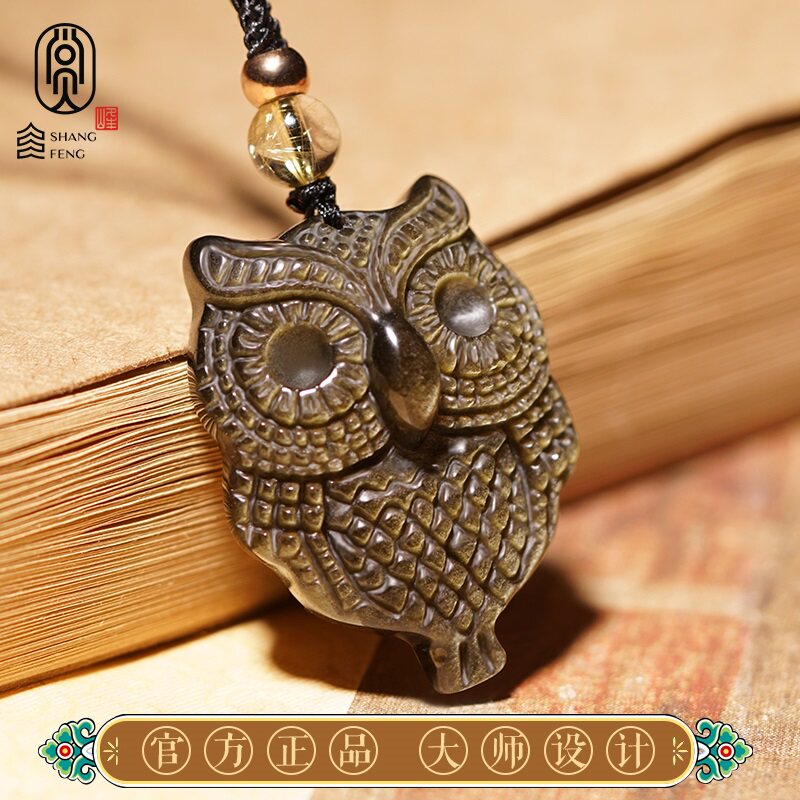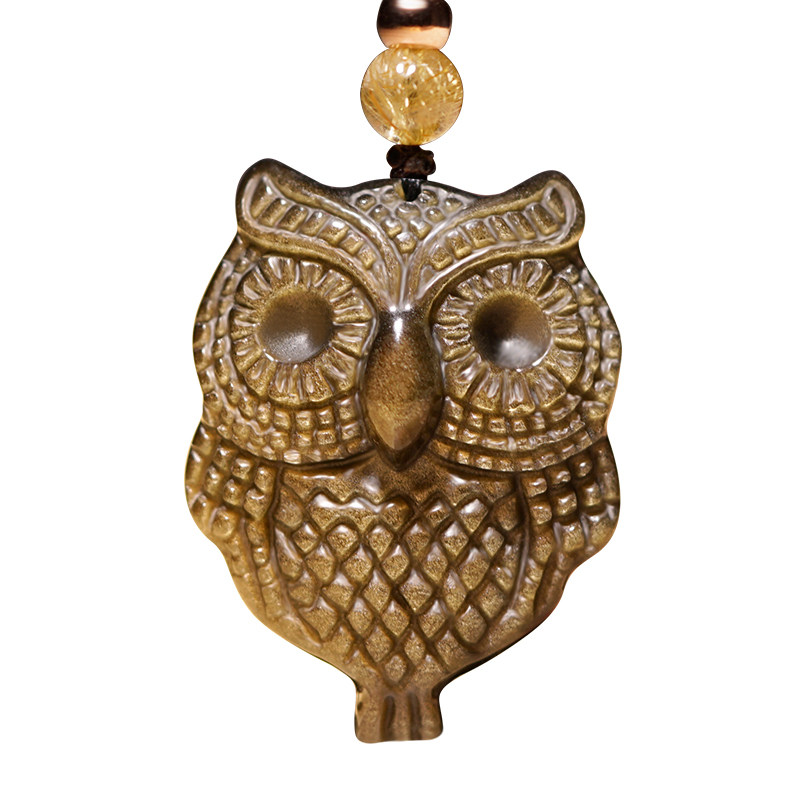 Obsidian owl pendant for men and women in the year of the cow and the rat