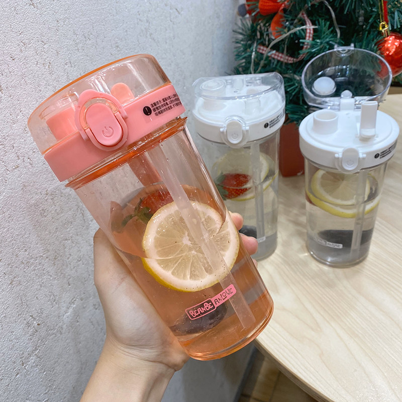 Little fairy water cup Cute drop-proof plastic straw cup Student simple creative personality portable ins accompanying cup