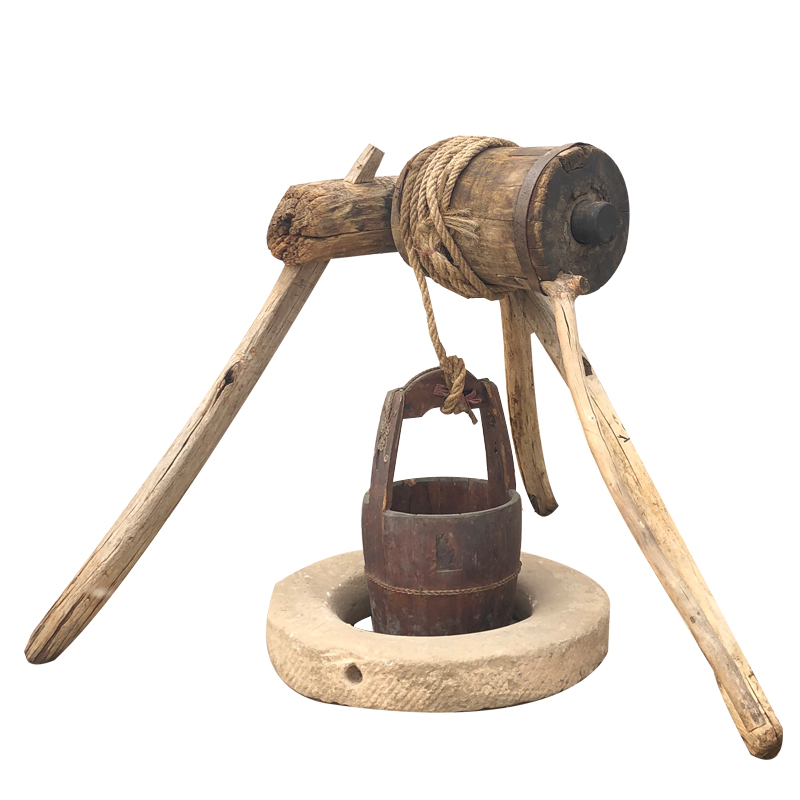 Hand-cranked reel folk custom old objects farmhouse retro decoration old farm tools rural wellhead water machine reel rack