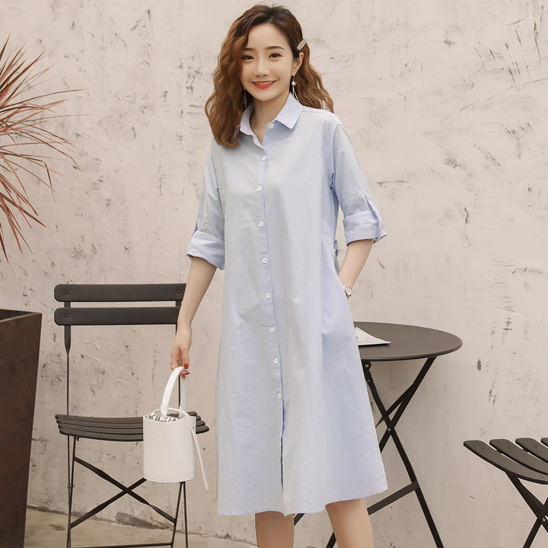 Pregnant women spring 2020 new shirt professional dress Korean version of the fashion cotton shirt foreign school long version of the shirt skirt