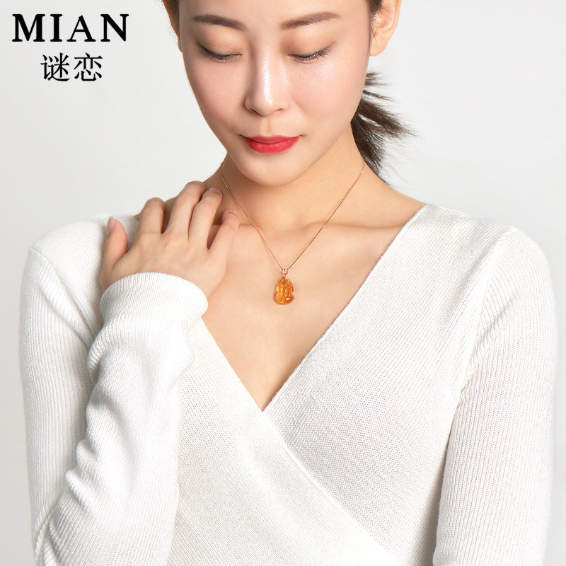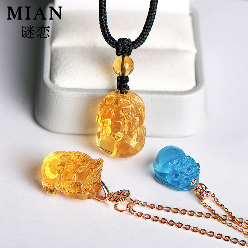 (Rare Old Mine) High product natural yellow crystal Pendant Pendant for men and women Fortune with crystal pendant necklace