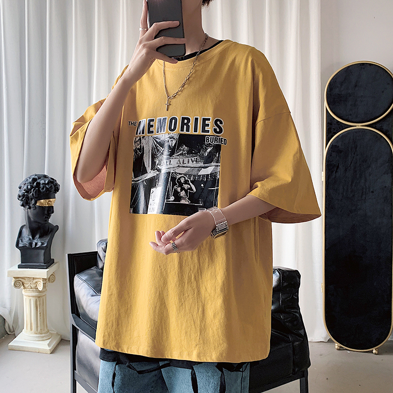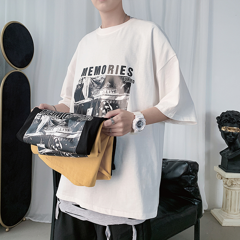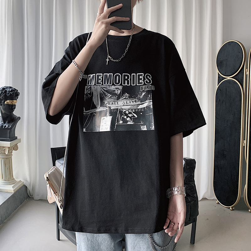 Sub-handsome men's clothing T-shirt men's fashion dark black ensemble short sleeve Korean version loose night store printed 50% sleeve T-shirt blouses