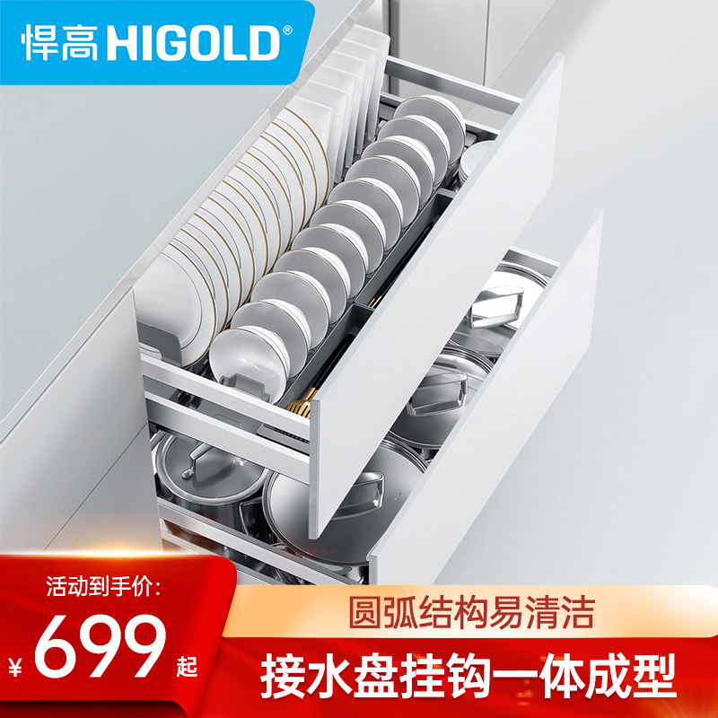 Humvee Pull Basket Kitchen Overall Cupboard 304 Stainless Steel Double Decker?With car seasonings rack of ground cabinet bowls and bowls of dishes