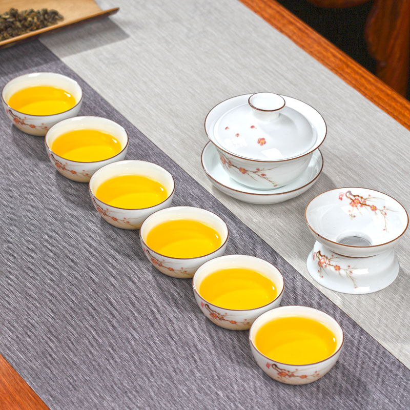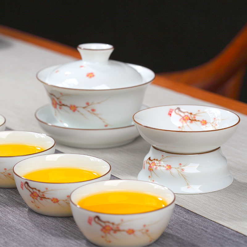 One pint Megha bowl * 1 strainer * 1 teacup * 12 High white one pint of plum shallow cup high white one pint plum large cover bowl high white one pint plum drain net