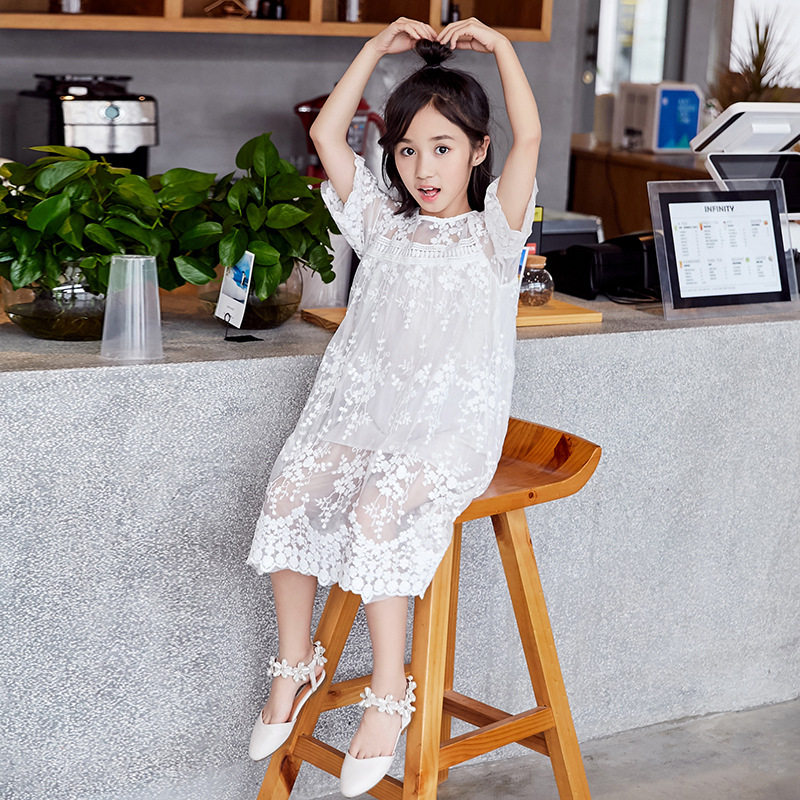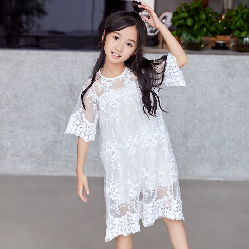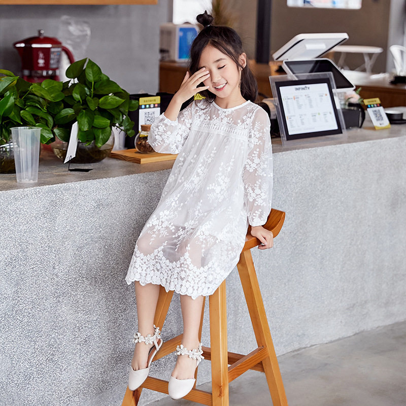 Girls' spring clothing new girl skirt Korean children's clothing children's dress lace long sleeves