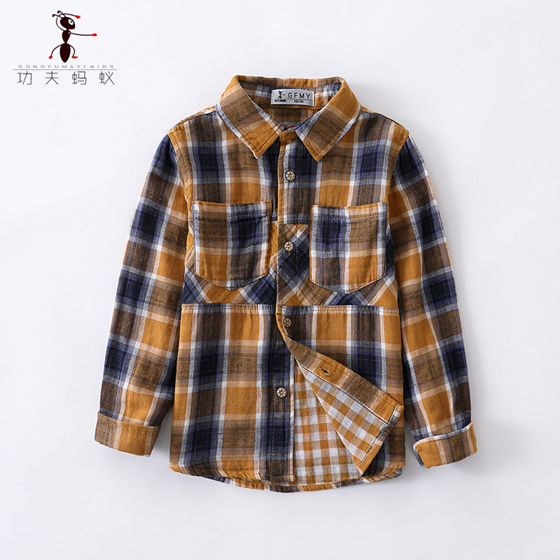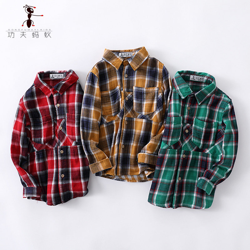 Boy Plaid Shirt Pure Cotton 2021 Spring Autumn New Children Long Sleeve Shirt CUHK Boy Casual Blouse Tide 4004