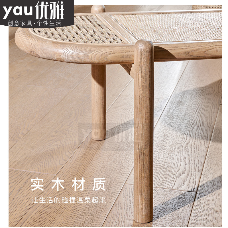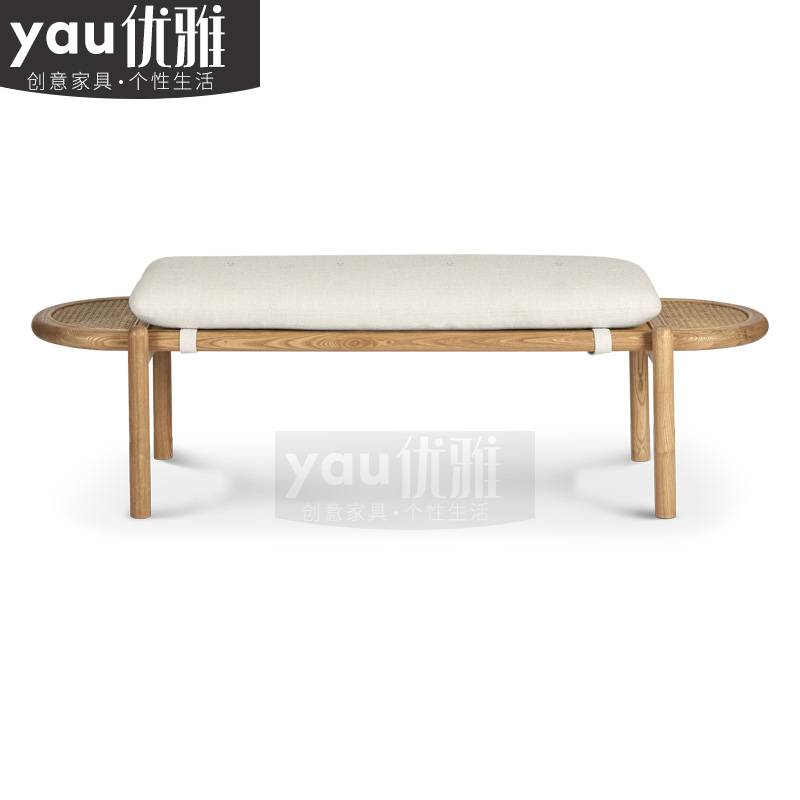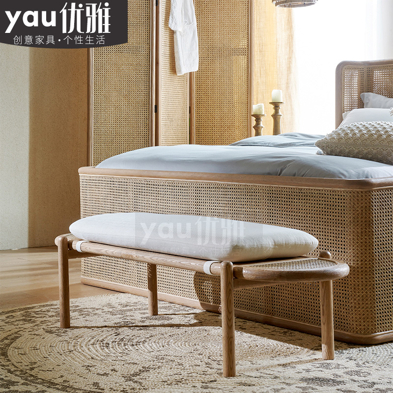 French retro rattan design solid wood bed end stool Nordic modern minimalist porch long strip shoe changing sofa bed end