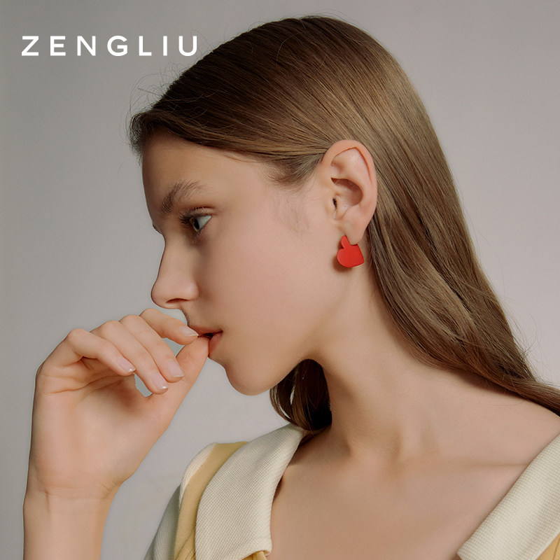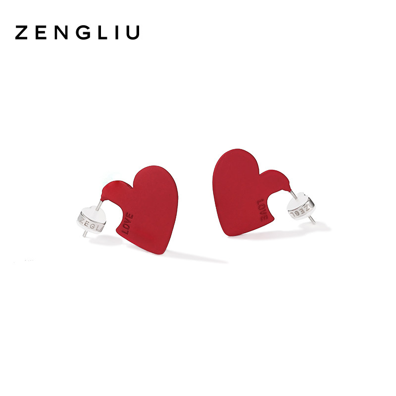 ZENGLIU burgundy heart stud earrings feminine petite earrings 925 silver needle earrings 2022 new fashion