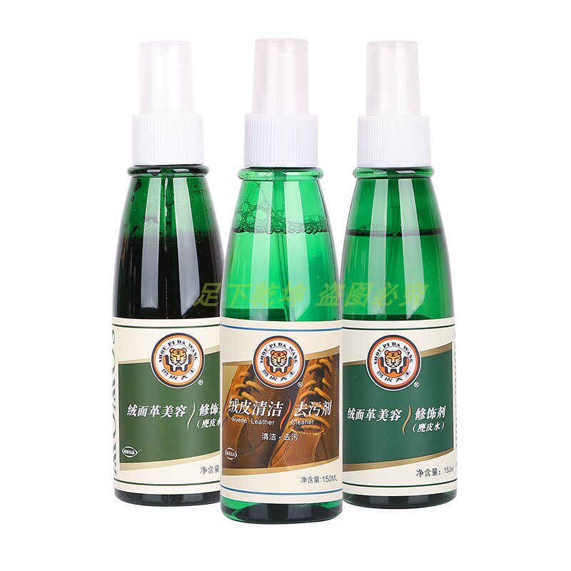 Suede Leather Cleanser 1 Bottle Brush 1 Small Towel 1 Colorless Modifiers 1 Bottle (Maintained) 1 Brush 1 Black Modifiers 1 Bottle (Complement Color) 1 Brush 1 Cleanser 1 Colorless Modifying Agent 1