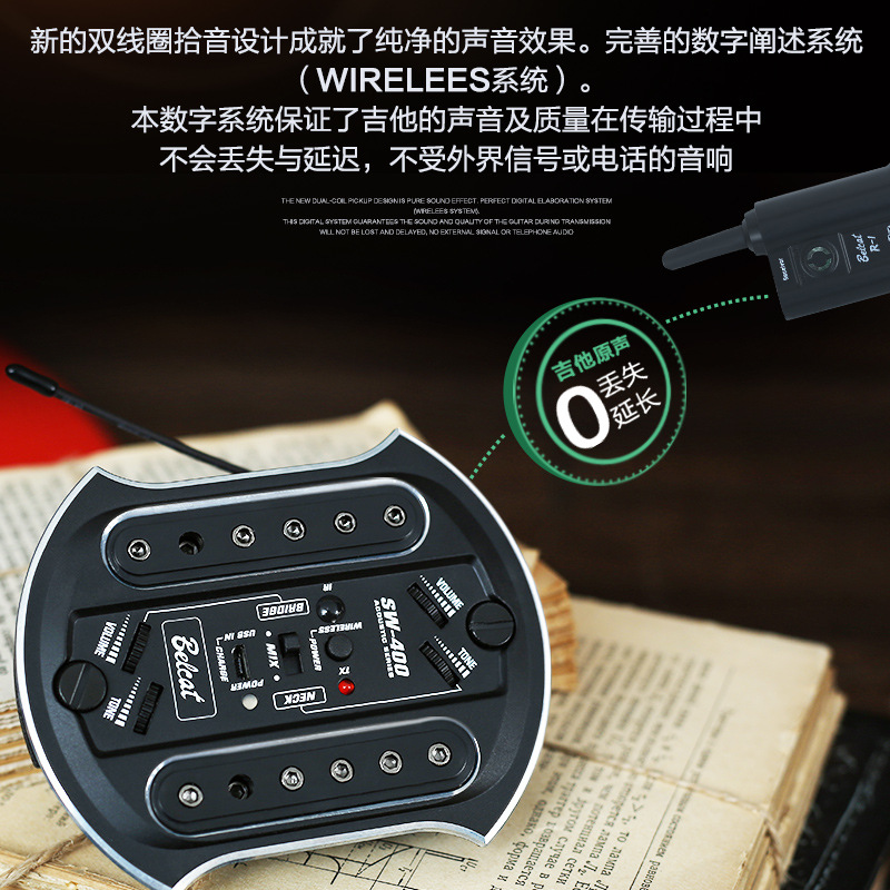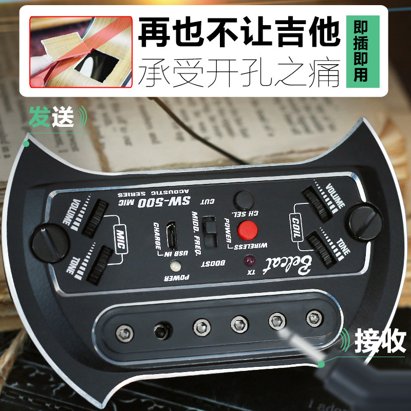 Double bell folk acoustic guitar pickup drill-free Bluetooth wireless board pickup amplifier SW400 500