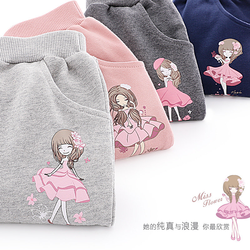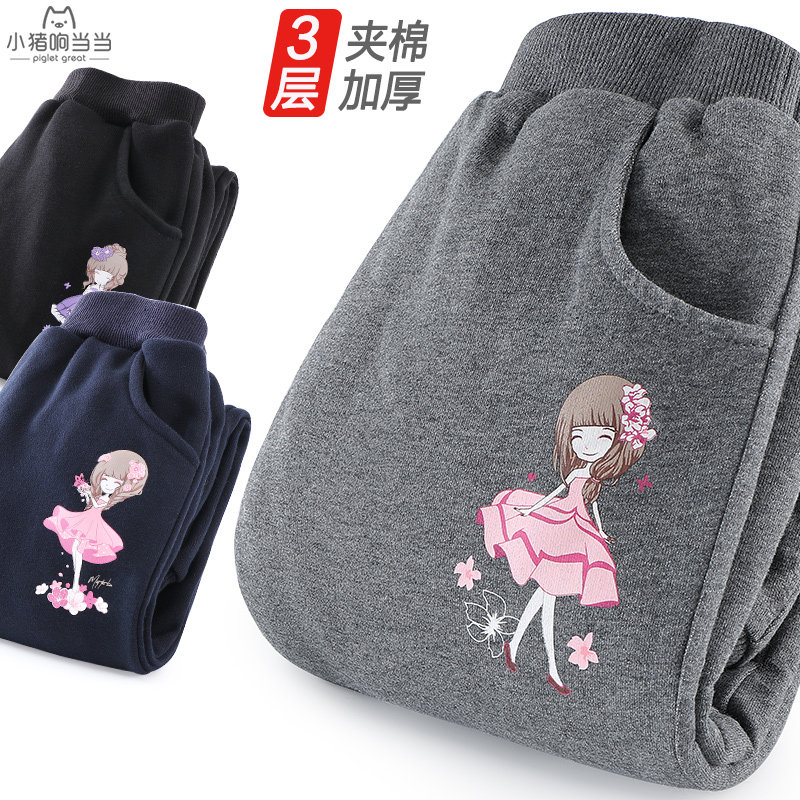 Girls plus velvet pants children's cotton pants autumn and winter thick warm sweatpants big boy girls wear loose winter clothes