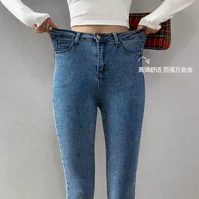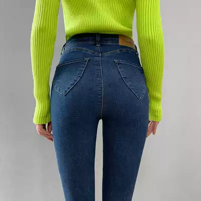 European and American high-waisted peach-hip jeans love pocket zipper stretch leggings to make old slim small-legged pencil pants