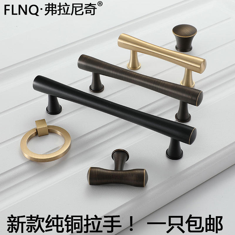American pure copper handle black copper cabinet handle Nordic luxury cabinet door drawer brass handle