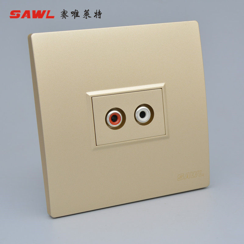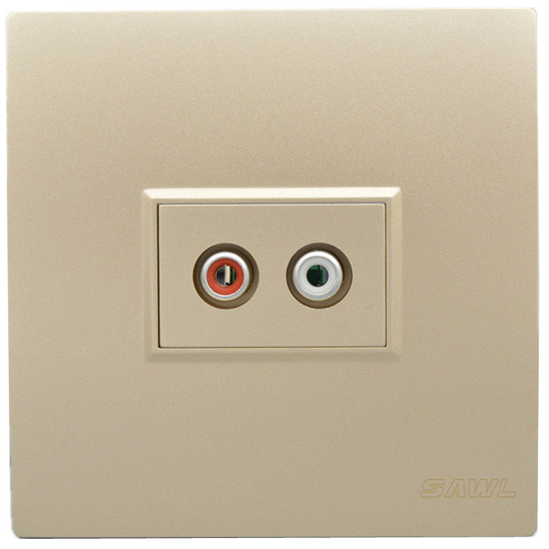 Champagne straight-inserted double-hole audio panel 86 type computer connected TV red white lotus head double sound track AV outlet socket