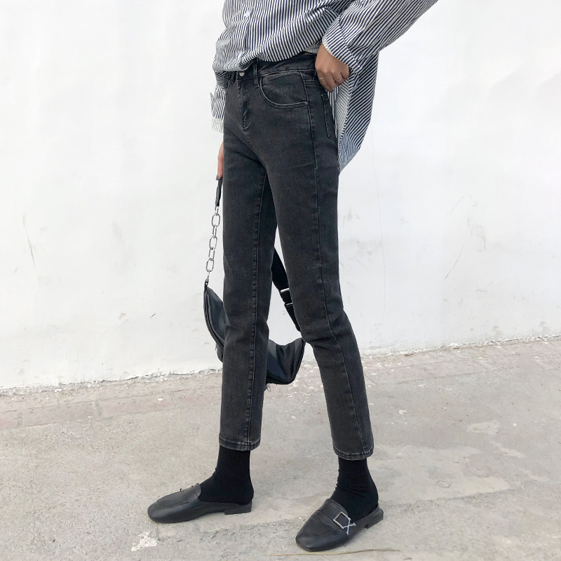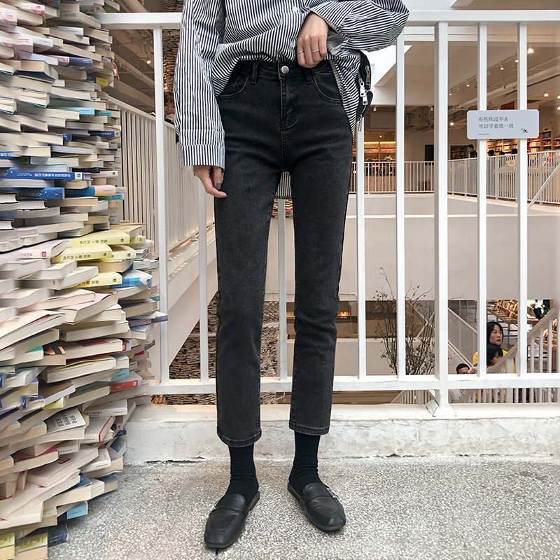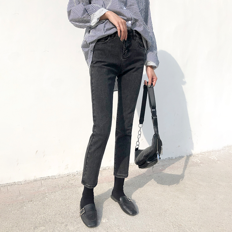 High-waisted jeans women's 2021 new spring black gray thin high nine points loose wide legs cigarette tube straight tube
