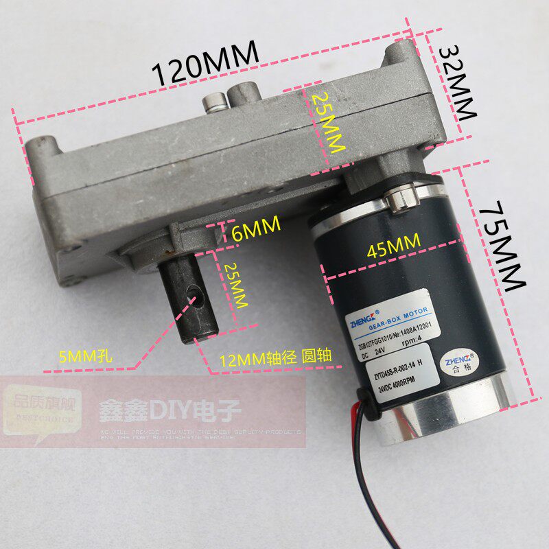 7 type DC gear box motor Metal gear High torque ZGB127FGG 24V4 turn low speed motor
