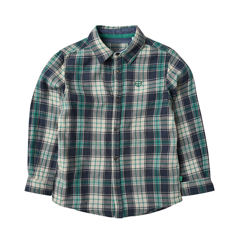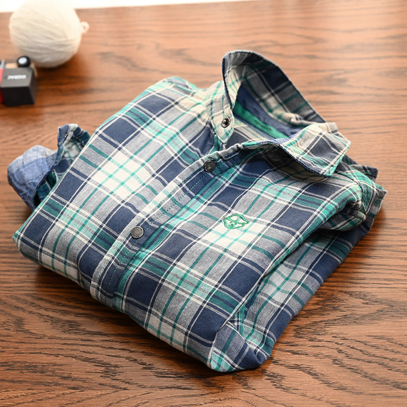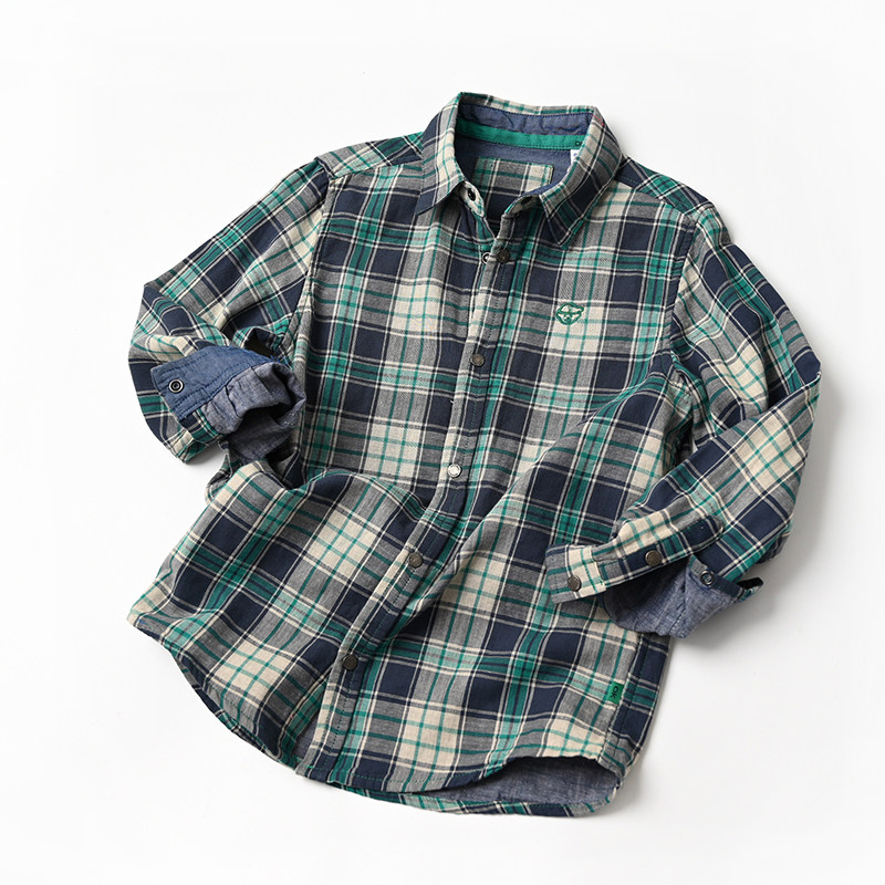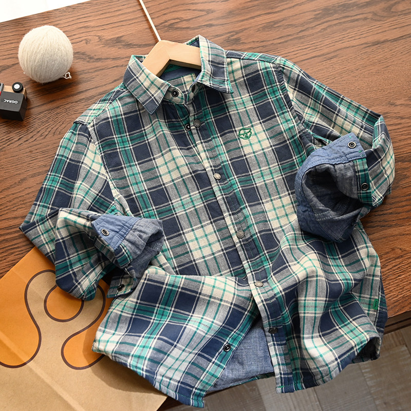Double Layer Soft Gauze Children Pure Cotton Plaid Shirt Boy Girl Cartoon Embroidered Long Sleeve Shirt New