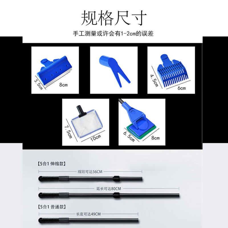 Five-in-one fish tank brush (non-retractable) Five-in-one fish tank brush (retractable upgrade) Long-handled double-sided brush (length 39 5cm) Long-handled double-sided brush (length 39 5cm)Two