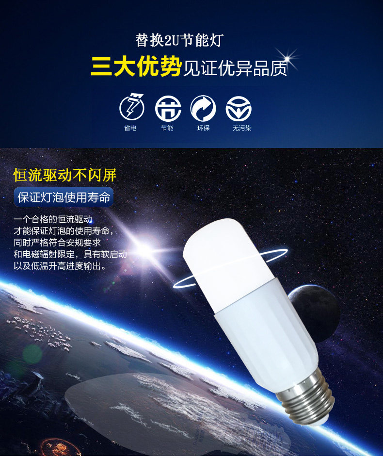 Falek led cylindrical bulb 5w9w13W screw port instead of small 2U spiral energy saving lamp column bulb
