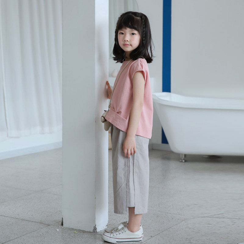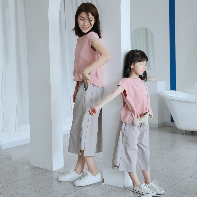 2021 summer new original casual parent-child outfit Western school mother-daughter outfit pure cotton short-sleeved T linen wide pants suit
