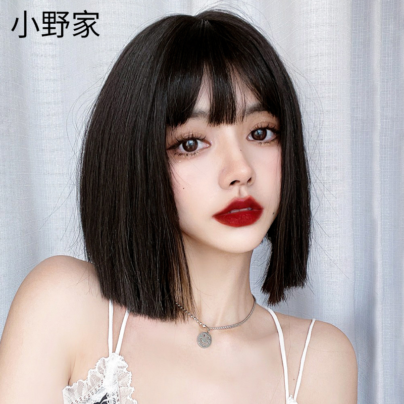 Comic Liuhai wig Female long straight hair clavicle hair Qi thick Liuhai round face net red real hair full headgear