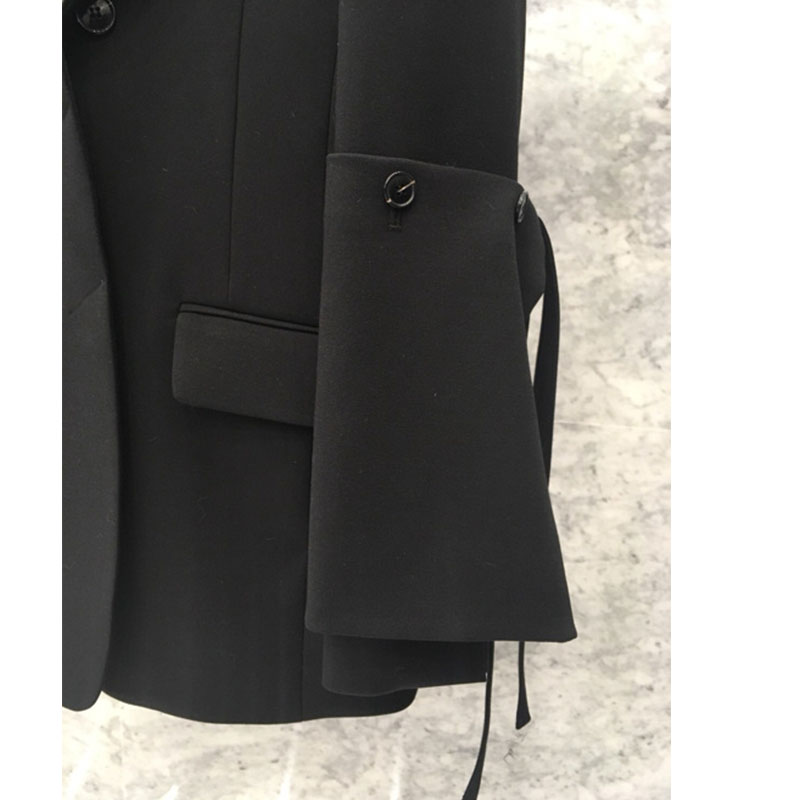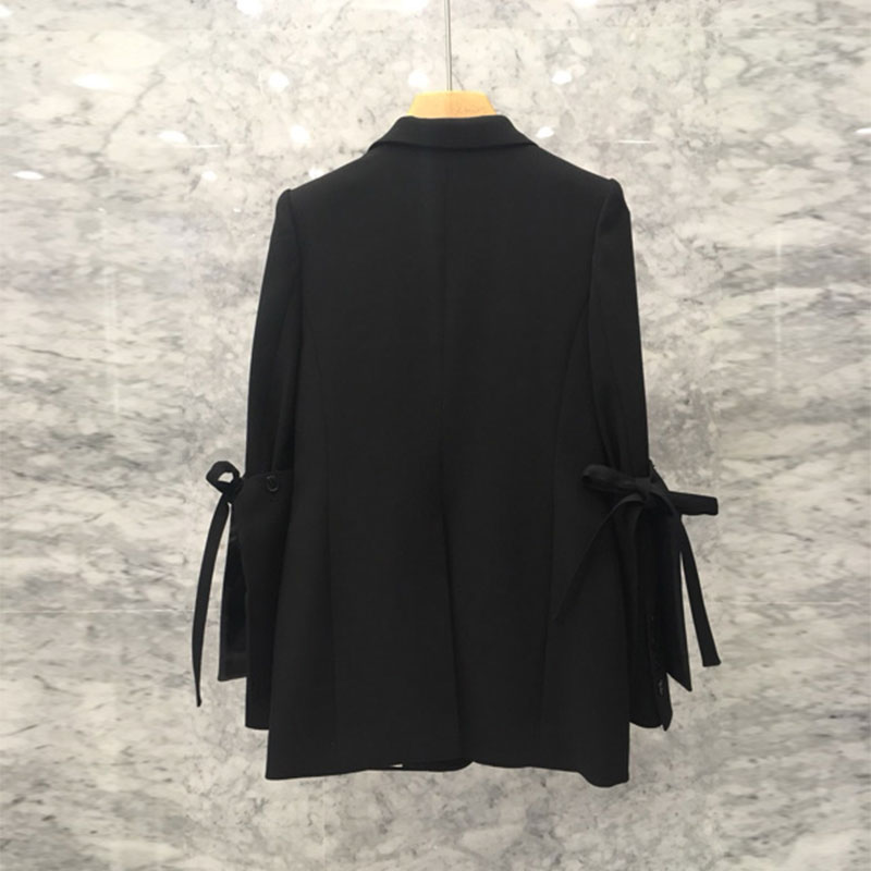 Net red black small suit jacket female 2021 spring new Korean version loose bow mid-length suit top