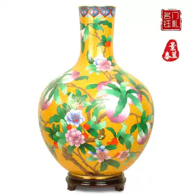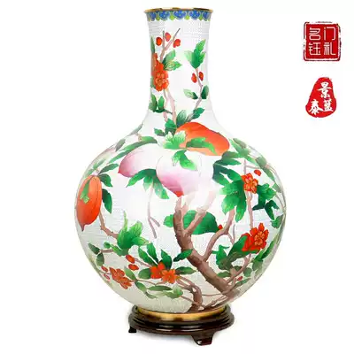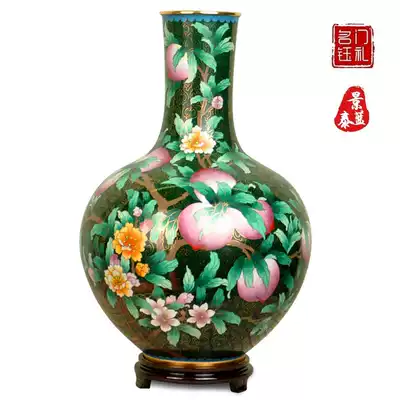 Cloisonne vase longevity peach nine peach bottle copper tire enamel home decoration to send birthday gifts to the elderly and elders