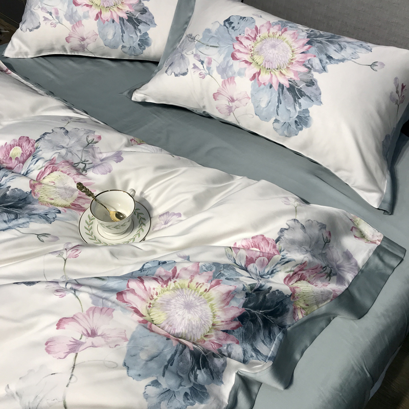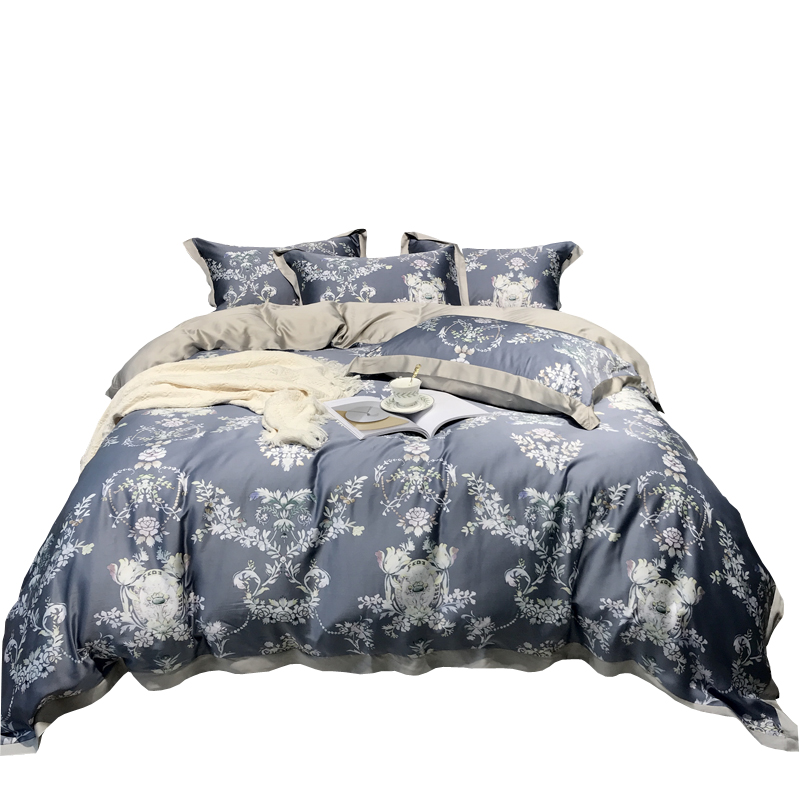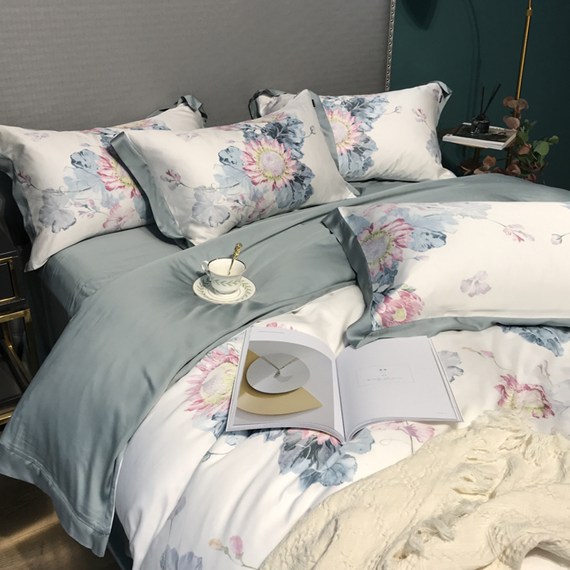 60 Lan Jing Tencel Four-piece Set Summer Naked Sleeping Double-sided Ice Silky Cool Pastoral Wind Duvet Cover Bedding Supplies