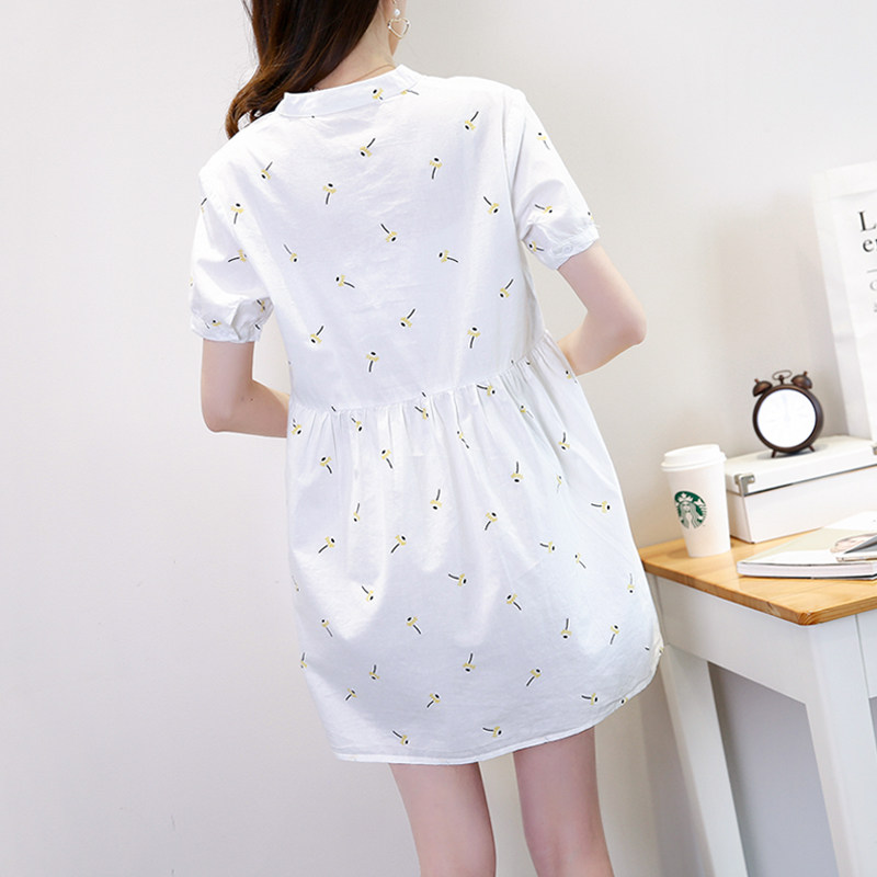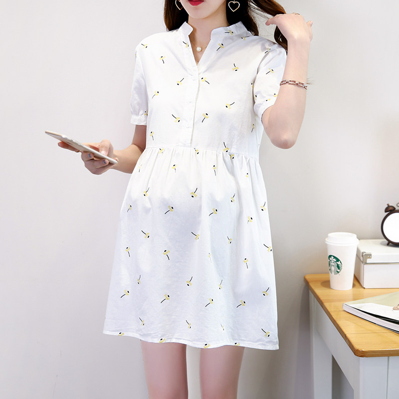 Korean V-neck maternity dress mid-length dress 2022 summer new maternity dress loose base large size skirt