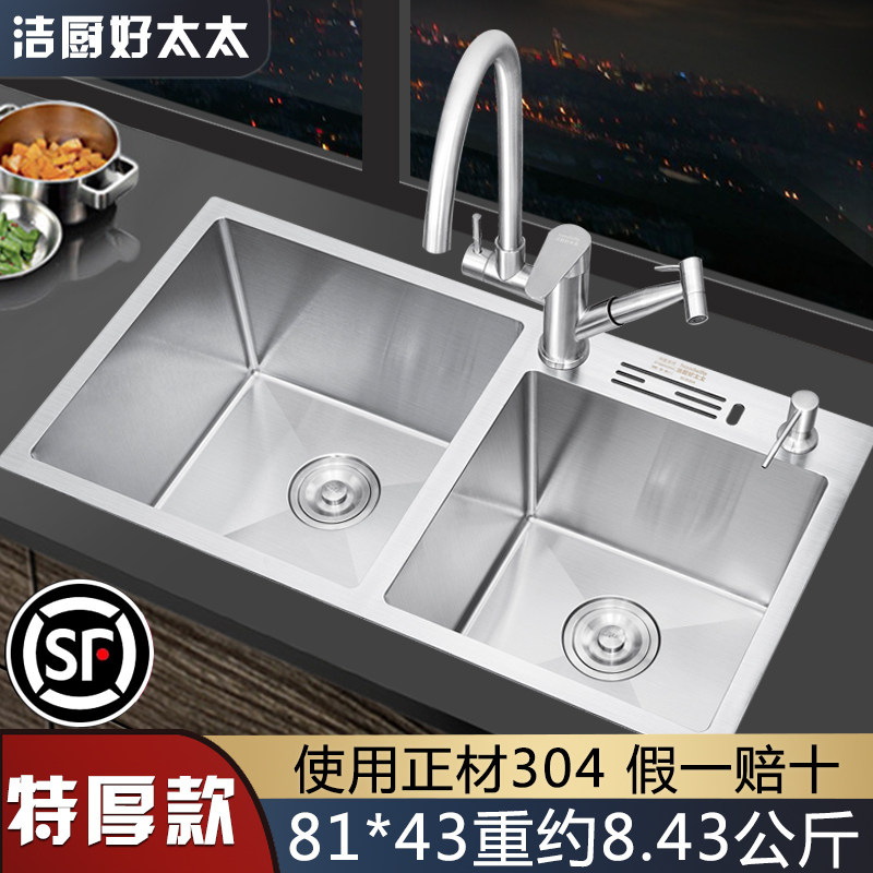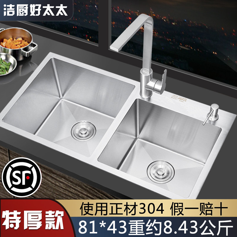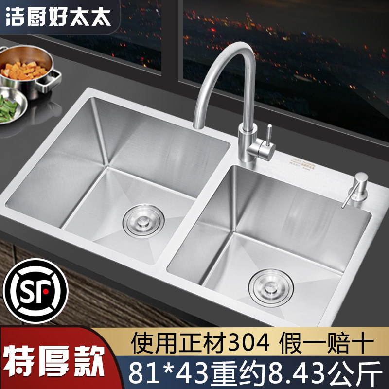 Good wife 304 stainless steel sink double sink thickened kitchen sink household under-counter basin wash basin dishwashing package