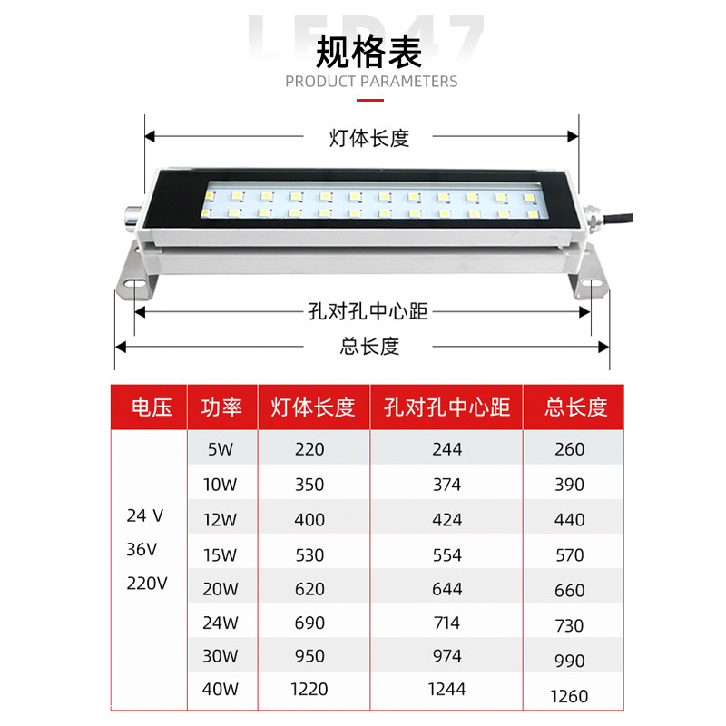 LED machine tool working light CNC machining centre numerical control waterproof lathe headlights 24V36V220V three anti-lamp lighting lamps