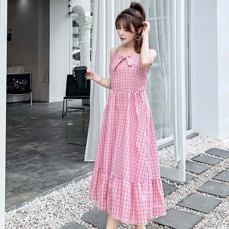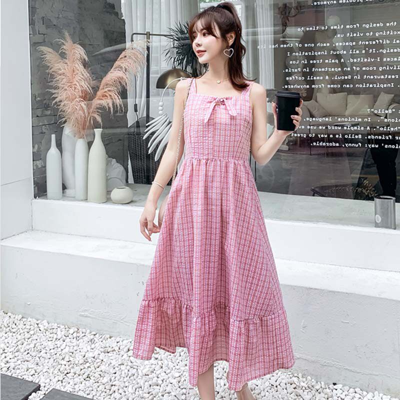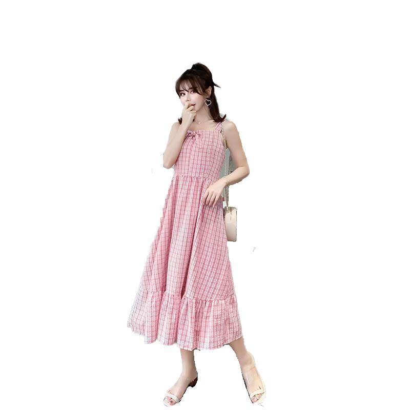 Summer maternity dress 2021 summer new tank top suspender dress loose plaid maternity midi skirt